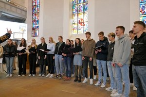 Schülerinnen und Schüler gestalten das Friedensgebet in der evangelischen Kirche Wiehl (Hauptstraße).