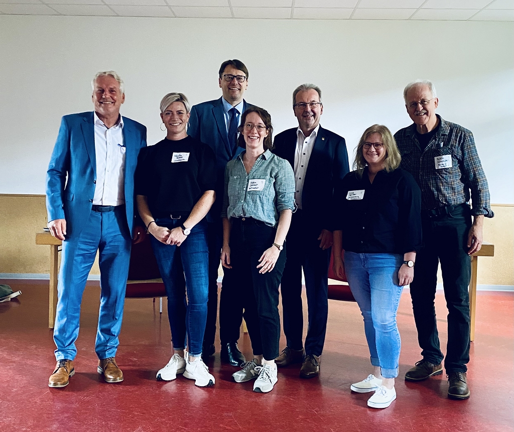 Auch ging es um die Fragen, welche Rolle die Führungskraft bei der Gestaltung einer generationenübergreifenden Kultur einnimmt und welche Aufgabe der örtlichen Politik und auch der Kirche zukommt. Welche Rahmenbedingungen sind für Unternehmen und die Personen vor Ort innerhalb einer Gemeinde zu schaffen? Superintendent Michael Braun und Bürgermeister Rüdiger Gennies brachten in kurzen Statements ihre aktuellen Gedanken zum Thema auf den Punkt. Sie zeigten auf, welche Hürden es abzubauen gilt, aber auch, dass das Thema „Haltung“ ein wichtiger Faktor ist. Haltung sei keine Frage einer Generation, sondern ist sehr individuell. Es hänge maßgeblich von der eigenen Person ab, ob man vorurteilsbewusst agiert und sich dem Thema aktiv und zielgerichtet widme oder ab man schlichtweg in seinen eventuell sehr eingefahrenen Verhaltensmustern bleibe.