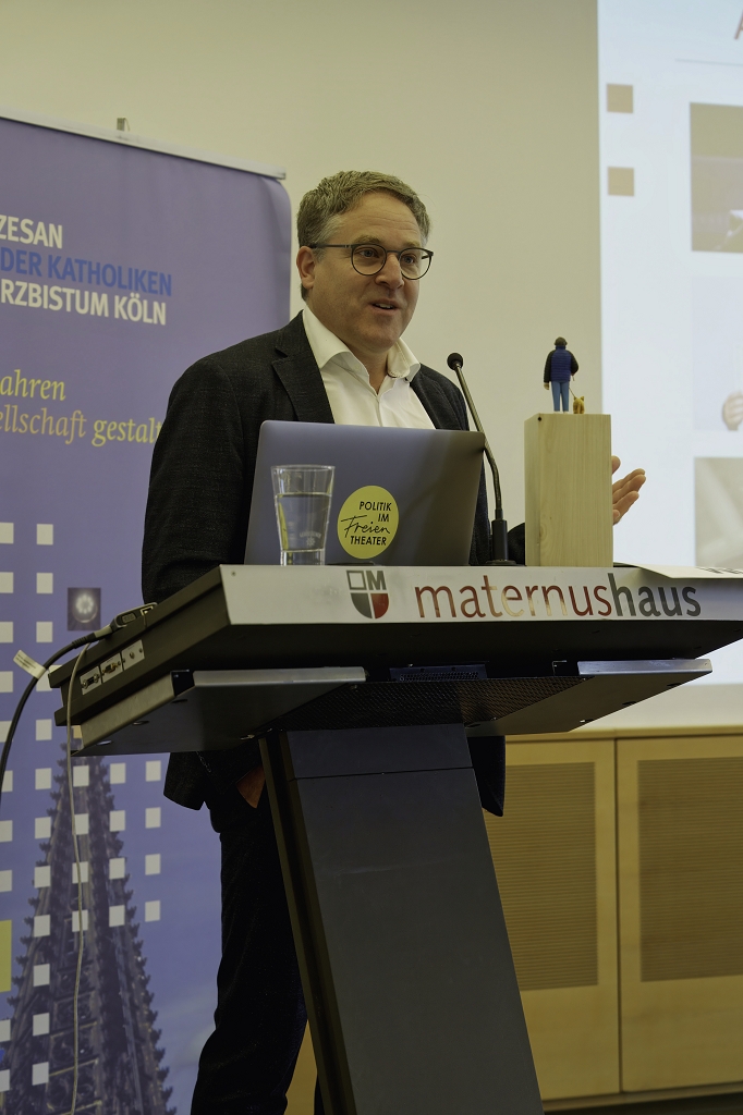 Es sei berührend gewesen, zu erleben, wie der Oberbürgermeister von Solingen (gleichzeitig Vorsitzender des Diözesanrates), Tim Kurzbach, und Daniel Kraft, Leiter der Stabsstelle Kommunikation der Bundeszentrale für politische Bildung, die Anwesenden für das Thema Menschenwürde und Demokratie sensibilisiert haben. Thema war der Beutelsbacher Konsens von 1976 ebenso wie die medienpolitische Strategie antidemokratischer Strömungen und konkrete Bedrohung öffentlicher Akteur*innen in Bereichen wie Medien und Politik. Silke Molnár: “Das war ein sehr intensiver Austausch, der uns wohl allen zu denken gegeben hat.”