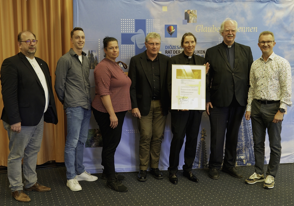 Pfarrerin Silke Molnár und Bernhard Wunder, Leiter des Katholischen Bildungswerks Oberberg, nahmen den Preis persönlich entgegen. Mit einer Gruppe an Unterstützern waren sie nach Köln gefahren.