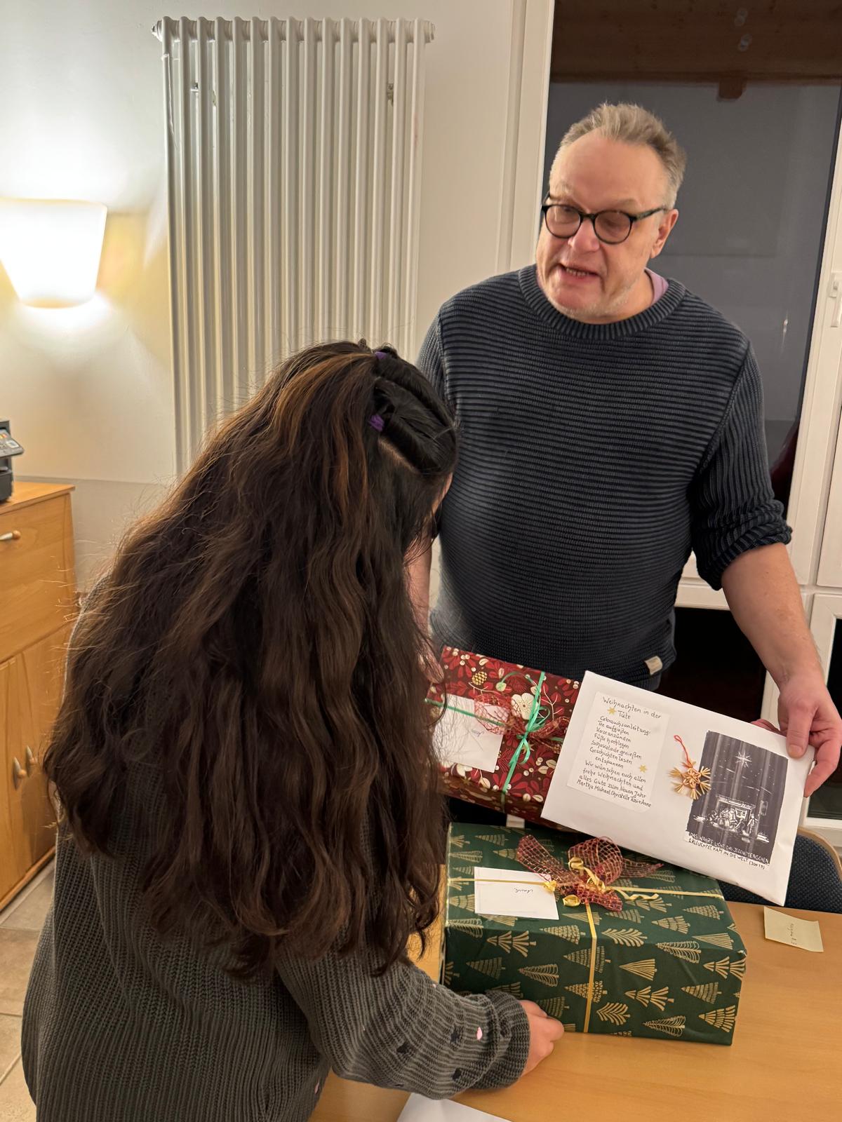 Die Flüchtlingsberatungsstelle des Kirchenkreises war ebenfalls vertreten. Der erfahrende Berater Omar Sabalbal ist jeden letzten Donnerstag im Monat von 10 bis 12 Uhr beim Café International dabei und berät bei Fragen zum Asylverfahren. Belma Belma Hadžerić als langjährige Leiterin der Beratungsstelle war ebenfalls unter den Gästen und war beeindruckt von der liebevollen Vorbereitung der Geschenke: „Es muss unglaublich viel Arbeit gewesen sein, die Geschenke für alle Kinder - nicht nur die anwesenden, sondern auch Geschwister - dem Alter angemessen zu packen - und das so liebevoll! Die Kinder waren so aufgeregt, als sie vor der Tür gewartet haben." Das schönste und berührendste für sie, war: "Die Kinder waren so glücklich!“
