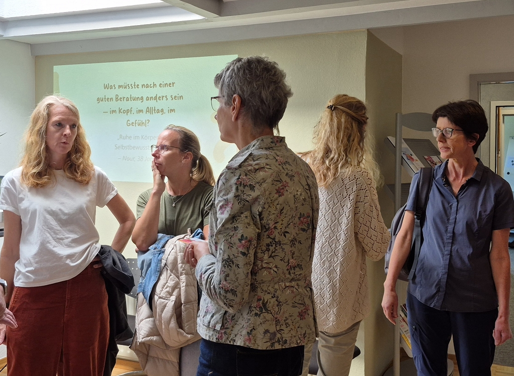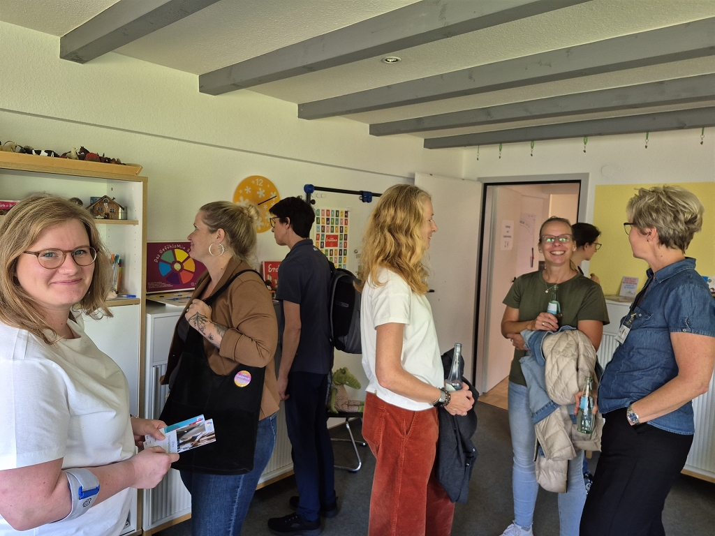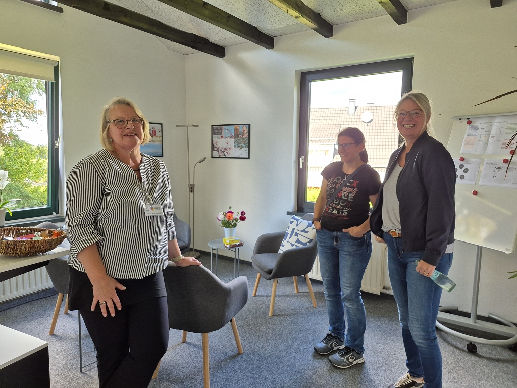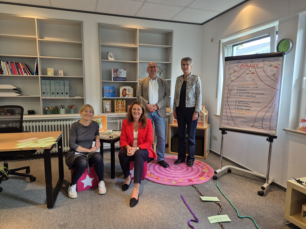 Dunja Kutzschbach, Leiterin des Hauses für Alle, freute sich auch über den Besuch von Deane Heumann, Referentin Familie und junge Menschen im Diakonischen Werk Rheinland-Westfalen-Lippe, die sich über die Arbeit der Evangelischen Beratungsstelle für Erziehungs-, Familien-, Ehe- und Lebensfragen informierte. Deane Heumann hatte am Montag die landesweite Woche der Erziehungshilfen mit eröffnet. „Ich war sehr beeindruckt von dem Engagement, der großen Wertschätzung, die immer wieder geäußert wurde zur Arbeit der Beratungsstelle und auch von der anschaulichen Aufbereitung und den freundlichen Gesprächen.“