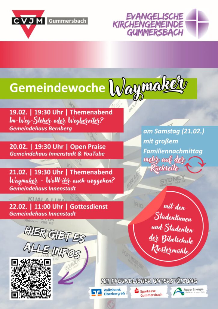 Der Eintritt, Essen und Getränke sind frei, um Spenden wird gebeten. Die Aktion findet im Rahmen einer Gemeindewoche statt, zu der die Evangelische Kirchengemeinde Gummersbach und der CVJM-Gummersbach e.V. gemeinsam einladen. Unter dem Titel "waymaker" geht es darum, Platz zu schaffen, für Begegnung mit Gott und miteinander.