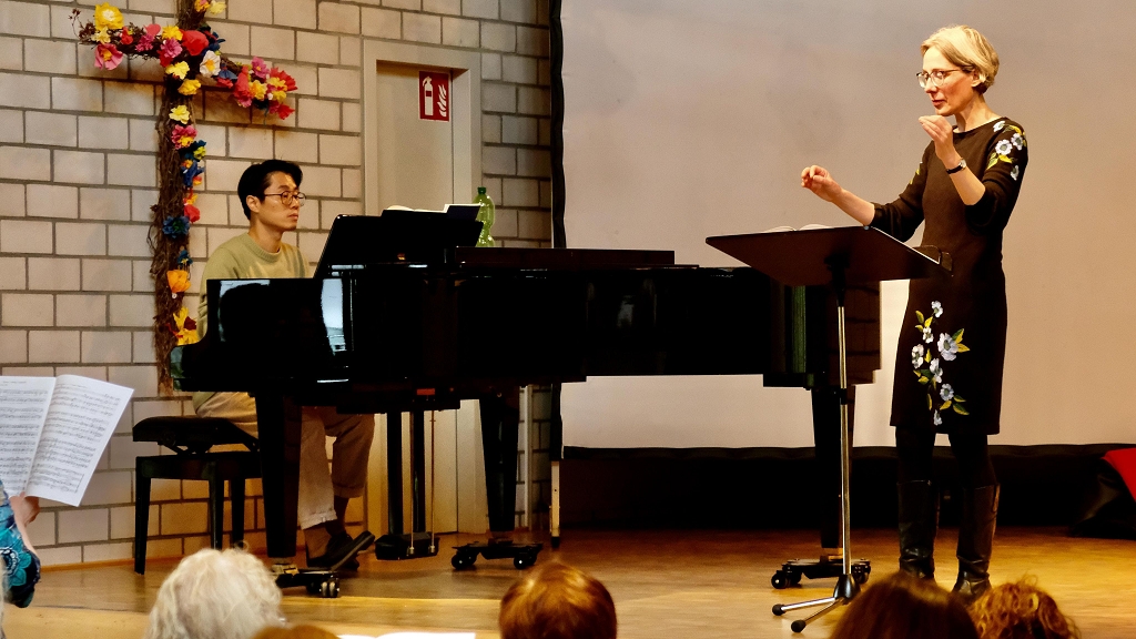 Der große Chor entfaltete bereits beachtlichen Klang und große Sicherheit bei den anspruchsvollen Harmonien des Requiems. Geleitet wird der Chor von den Kantoren Arndt Schumacher und Doo Jin Park sowie Kreiskantorin Dr. Annemarie Sirrenberg, die jeweils phasenweise am Dirigierpult standen oder am Flügel begleiteten.