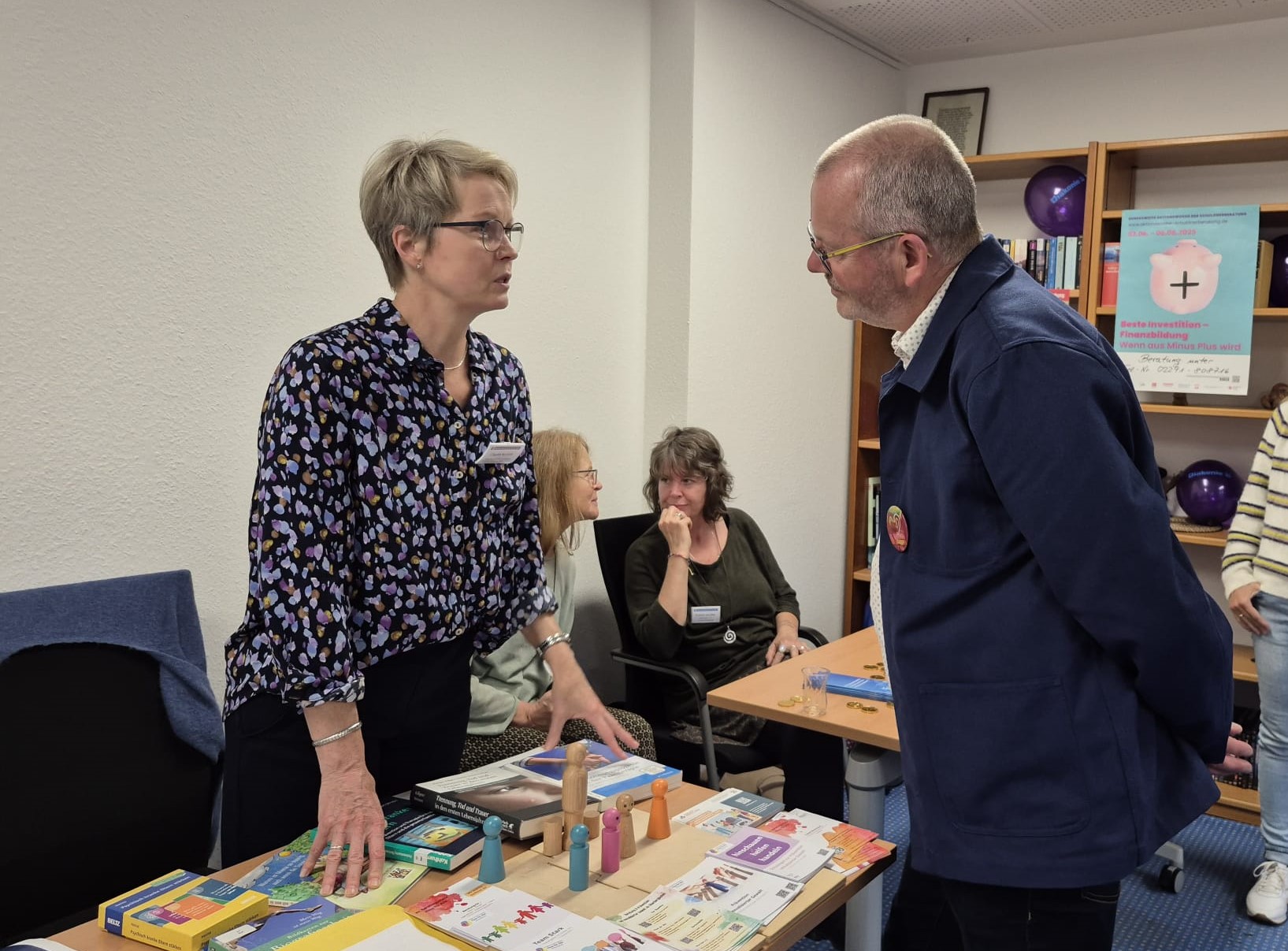 Alle Abteilungen waren vertreten und präsentierten sich im ganzen Haus: die Finanzabteilung, Personalabteilung, Liegenschaften und Infrastrukturabteilung, dazu die Superintendentur, das Schulreferat, das Jugendreferat, die Kita-Fachberatung, das Pressereferat und die Pfarrstelle Segen An der Agger. Die Diakonie mit ihren Beratungsstellen - die Flüchtlingsberatung aus Gummersbach, die Lebensberatung Haus für Alle und die Schuldner- und Insolvenzberatung aus Waldbröl, die Wohnungslosenberatung präsentierten sich im großen Mitarbeiterraum und im großen KSV-Raum.