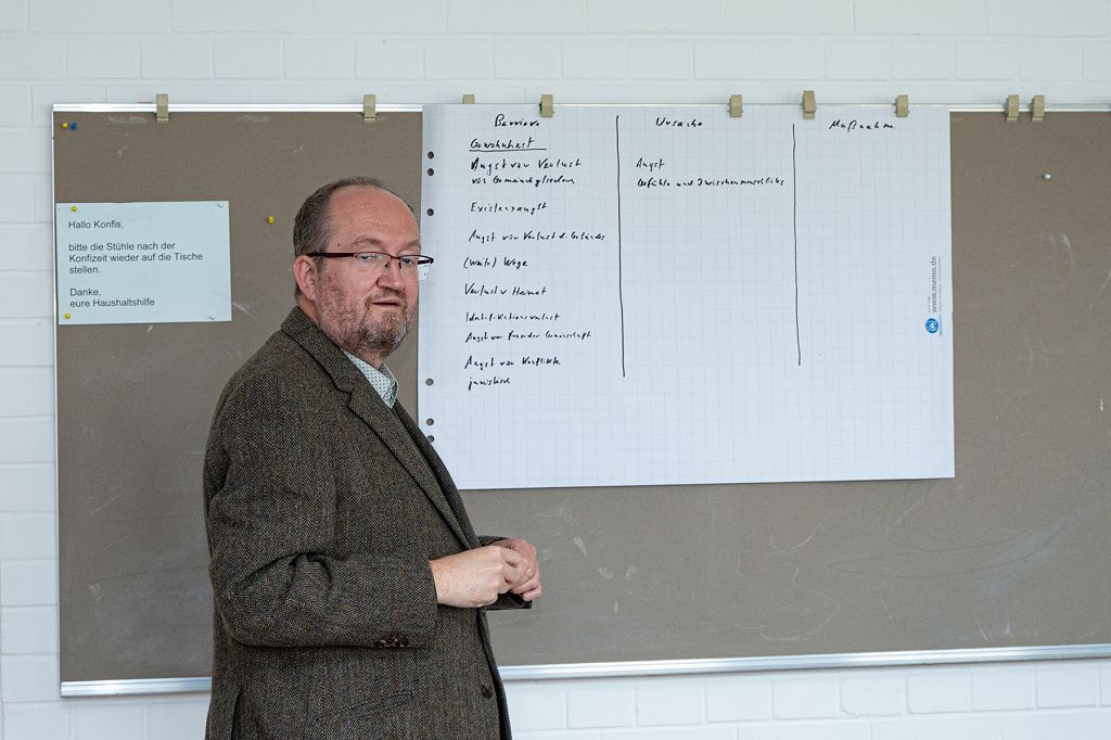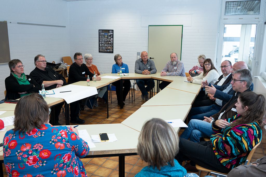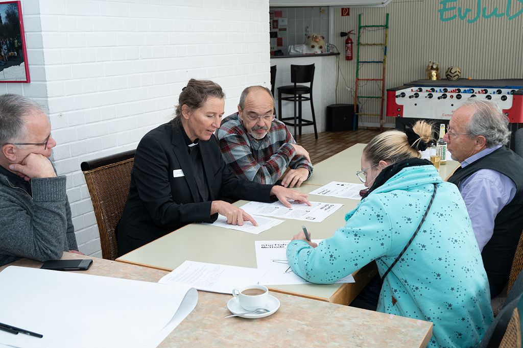 In sechs Arbeitsgruppen arbeiteten die Synodalen am Samstagvormittag konkret an typischen Aufgaben: Personalwechsel nach Stellenreduktion, Fusion zweier Gemeinden, Gruppen und Kreise beenden, Aufgabe von Gebäuden und Zusammenarbeit nach Neustart wie im Fall des Bevollmächtigtenausschusses (BVA) An der Wipper, der zeitweise das aufgelöste Presbyterium ersetzte und weitreichende Entscheidungen treffen musste.