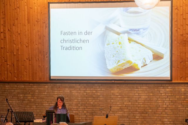 Inci Özmen berichtet, die christlichen Gäste würden im Wesentlichen zwei Fragen stellen: Warum fastet ihr? Und warum tragt ihr als Frauen das Kopftuch? „Auf beide Fragen kann ich antworten, dass wir auf diesem Weg Gottes Nähe suchen.“ Esra Hamidullin, die als Moderatorin durch den Abend führt, ergänzt: „Im Fasten werden wir uns unserer Schwäche bewusst. Wir erleben Hunger – für so viele Menschen auf der Welt ist das Alltag. Das wird uns in dieser Zeit deutlich.“ Und Rabia Karataş erläutert: „Wenn ich mein Kopftuch trage, zeige ich, dass ich mich nicht über mein Äußeres definieren lassen möchte.“