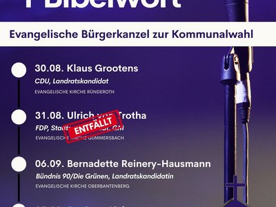 Sonntags um 10 Uhr Gottesdienst in der ev. Kirche Oberbantenberg (Oberbantenberger Str. 42, 51674 Wiehl) und in der ev. Kirche Bielstein (Gustav-Adolf-Straße 13, 51674 Wiehl); youTube-Kanal der Gemeinde