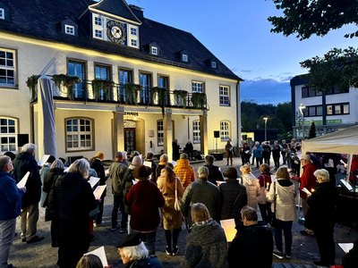 Friedensgebet in Nümbrecht: jeden Sonntag, 18 Uhr, vor oder in der Evangelischen Kirche Nümbrecht (mit Posaunenchor), Hauptstraße.